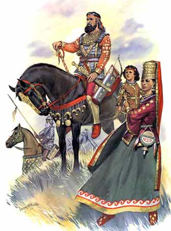 приняв копьё, пустой колчан и лук.