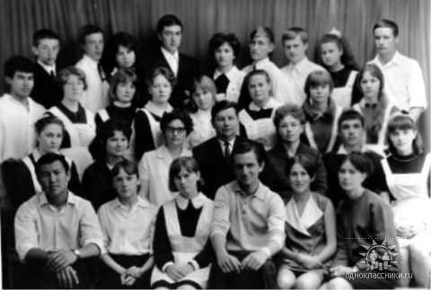 На чёрно-белом фото, старший класс.