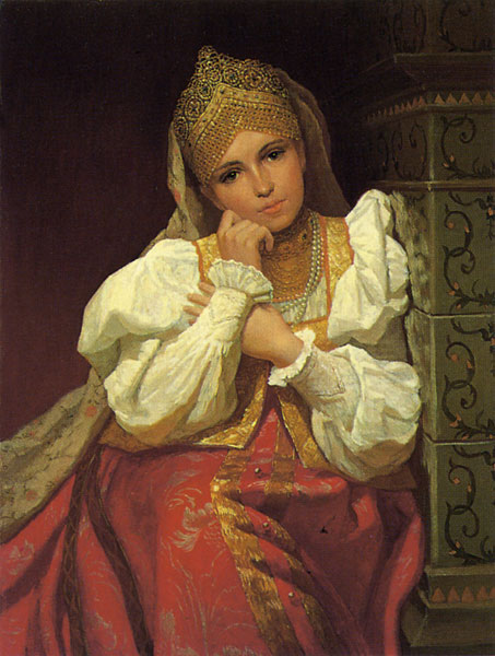 в сарафане ярком пёстром
