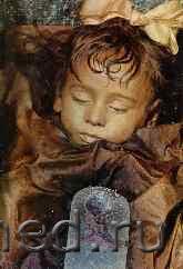 *Это одно из наиболее хорошо сохранившихся тел в катакомбах капуцинов в Палермо - Розалия Ломбардо, двухлетняя девочка из Сицилии, умершая в 1920 году. Кажется, что она как будто спит, поэтому её и прозвали "спящей красавицей". То, что выяснилось в ходе исследований учёных, опровергает все законы медицины: компьютерное устройство зафиксировало очень слабые электронные импульсы мозга девочки, какие могут регистрироваться лишь у человека, который спит.