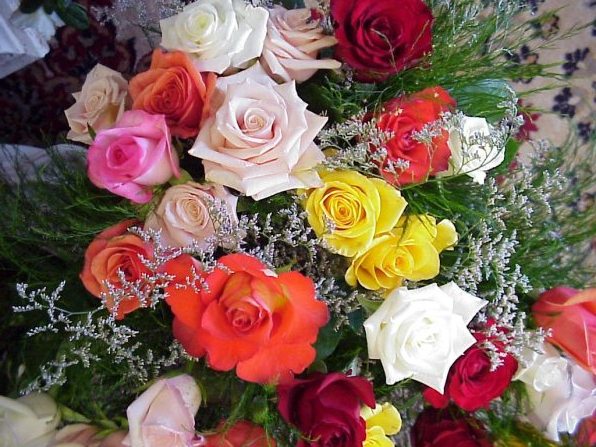 Принёс я розовый букет,