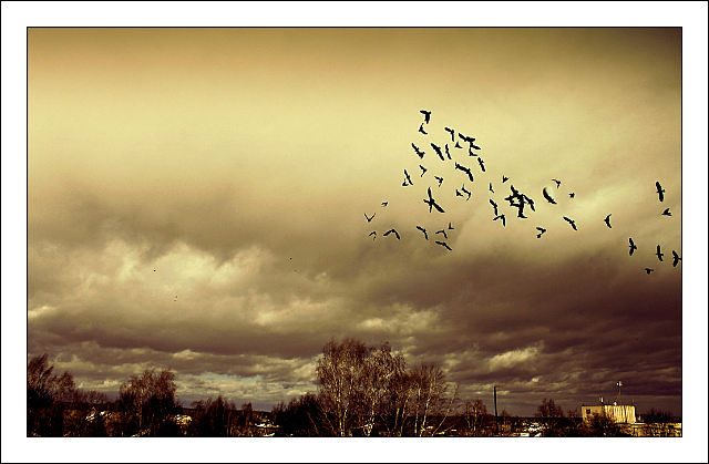 Ворон задумчиво в небе парит: