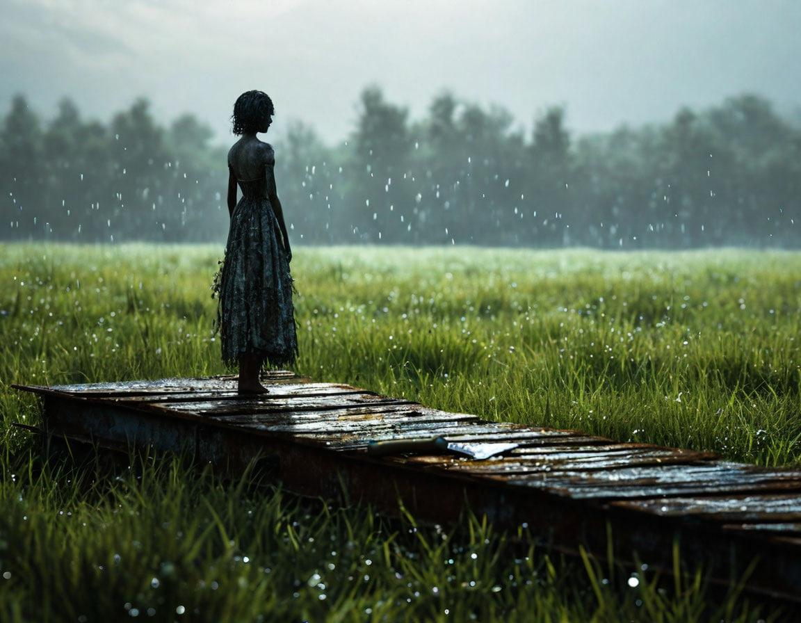 Листья под нею в каплях росы.