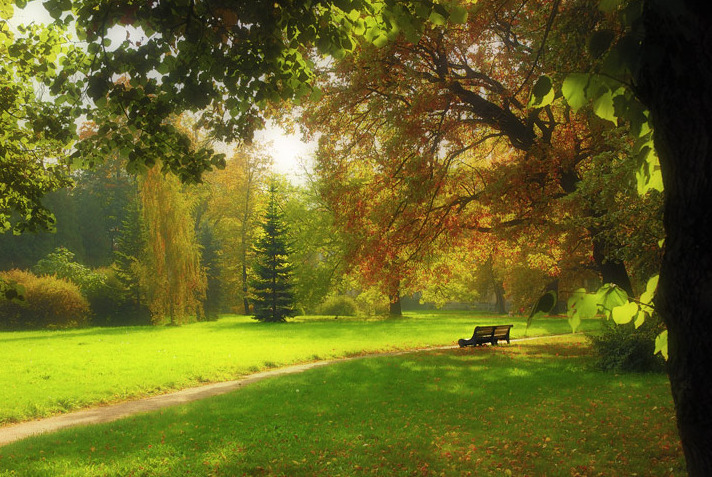 где клён приветствует охристой гривой,