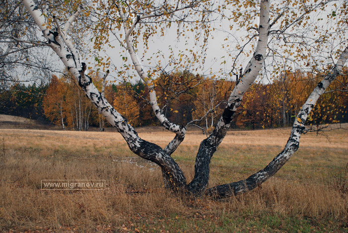 А с берёз срывает осень платьица...