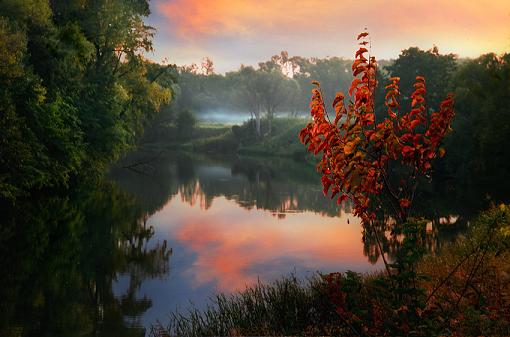 октябрьской палитрой стекает заря;