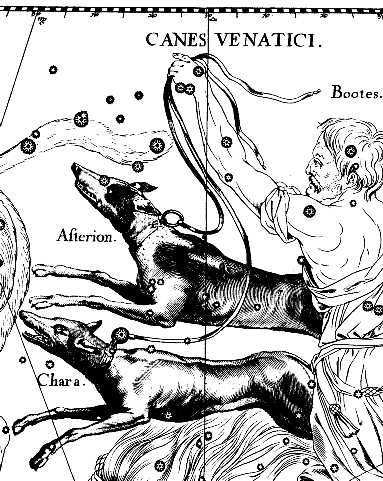 Рисунок созвездя Гончих Псов из атласа Яна Бевелия.