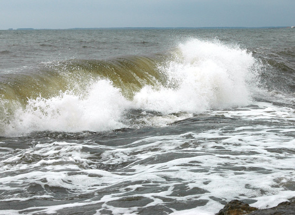 Волны бросает на черные скалы.