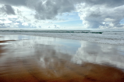 Покрыло берег морскою волною.Переливаясь на солнце в рассыпную брызгами шампанского в радужном свете. Опрыскивая и "его" стоящего при шторме. О чем он думал так...в руке держа лишь палку. Направляясь прямо в воду? Нет, не утопиться он хотел. Он просто наблюдал неописуемую природу и страх за оказавшихся там ещё маленьких судов.