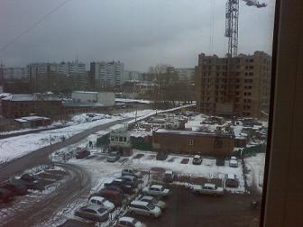 Дома новостроек, башенный кран в снегу, свежо...