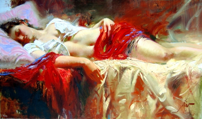 Руки – на простыни, плечи чуть влажные...