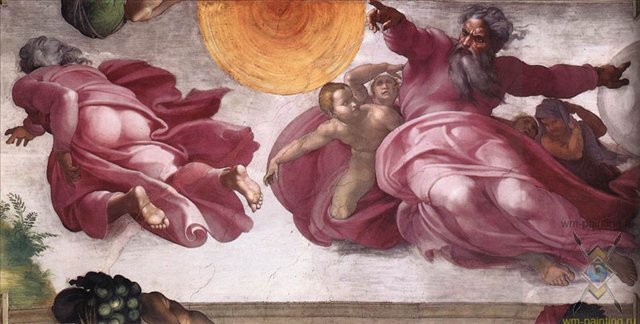 Иллюстрация – Сотворение солнца и луны, часть потолка Сикстинской капеллы Микеланжело.