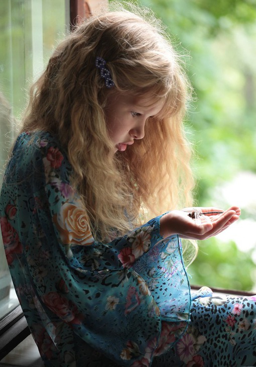 Села на ладошку без испуга,