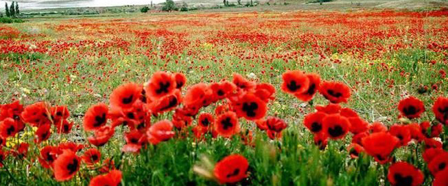 Там красиво маки расцвели.