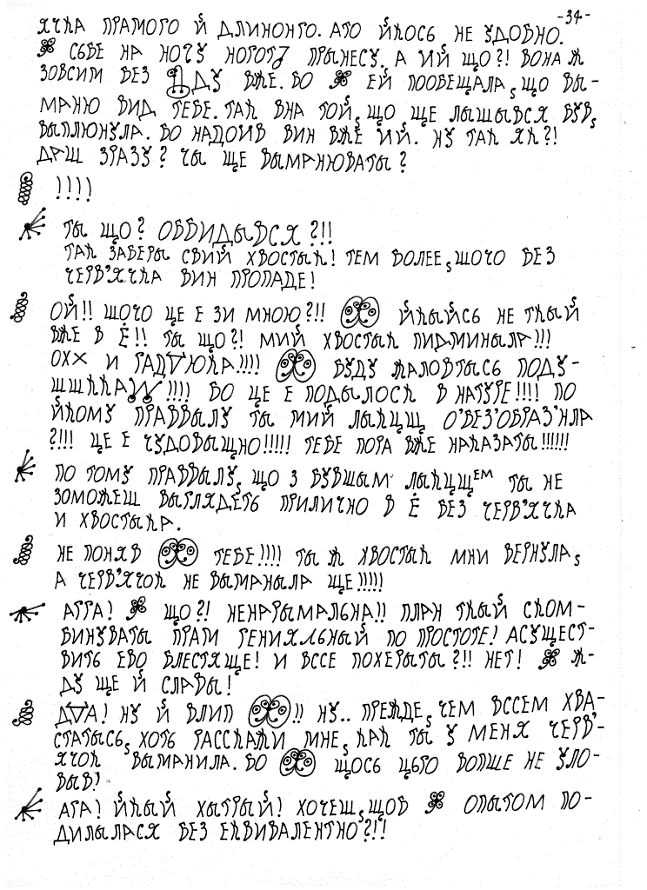 Й. В ЗНАК ПРИМИРЕНИЯ ДАЙ МОИЙ ГАДЫНИ ЧЕРВ'ЯЧКА ПРАМОГО Й ДЛИНОНГО.