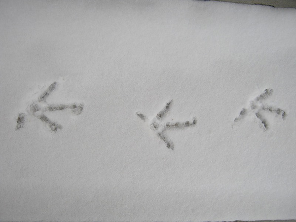 Следы замёрзших птичьих лапок,