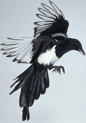 А Белобока поселилась в соседнем саду, повыше, подальше от кошек и собак и тайком стала проказничать. Однажды на глазах соседки она прямо с крыльца схватила блестящие часы и понесла их в клюве над садом под крики хозяйки: