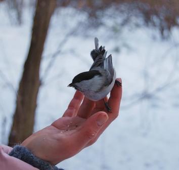 А я птахе той - цветок в клювик,