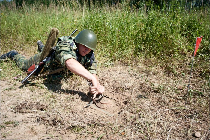 Сапер устал,но поглядел с усмешкой