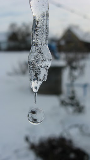 Каплей воды по прозрачной сосуле-
