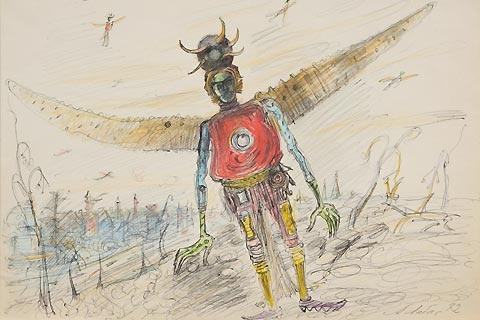 Как его полотна, в небо,