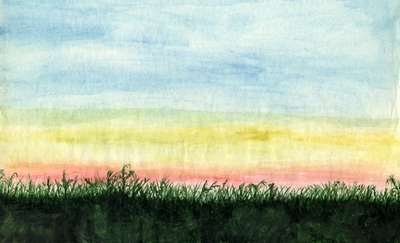 В рамке простой акварельный пейзаж.