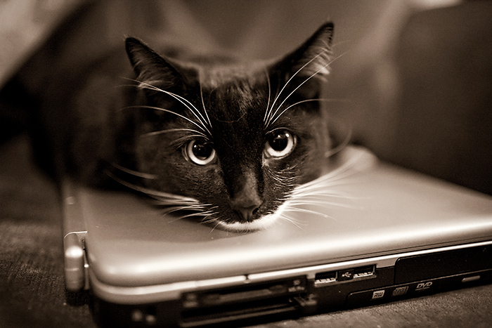 Чёрный кот. Он сегодня не в настроении. День не удался с самого утра. Всю ночь мечтал о чём-то вкусненьком, а тут опять – рыба. Прямо как в домино, опять в проигрыше. «Вот я Вам покажу» - взял и напрудил лужу посреди кухни – «Плавайте рыбки!» За что получил взбучку, потом посадили в карцер (туалет) на целый час. Там в темноте мечтал о солнце ласковом теплом: как он, вытянувшись всем своим гибким телом по подоконнику, греется в его лучах. И когда закончился час заключения, прямиком помчался на кухню на подоконник, но просчитался в расстоянии, с грохотом свалился за табурет. Сконфуженный ушёл прочь, ну никакого настроения!