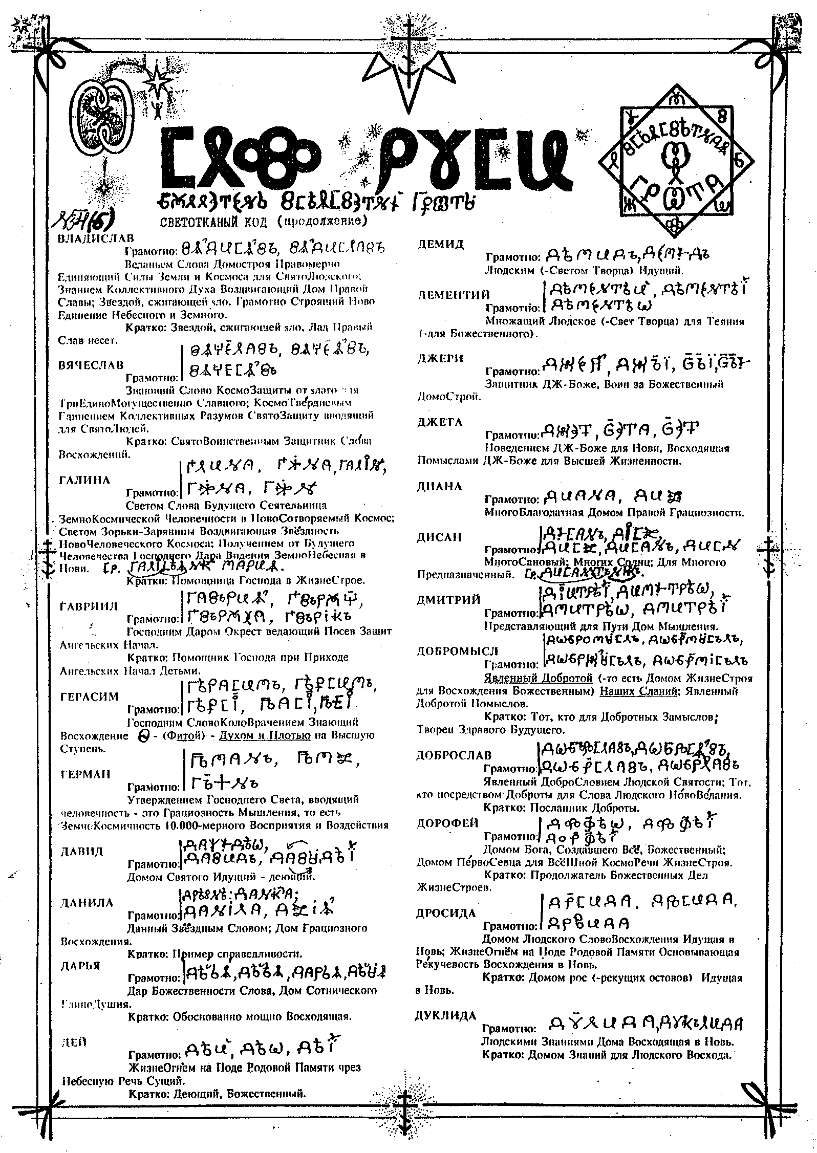 Светотканый код (имена) от