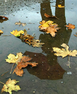 Россыпь листьев на дороге,