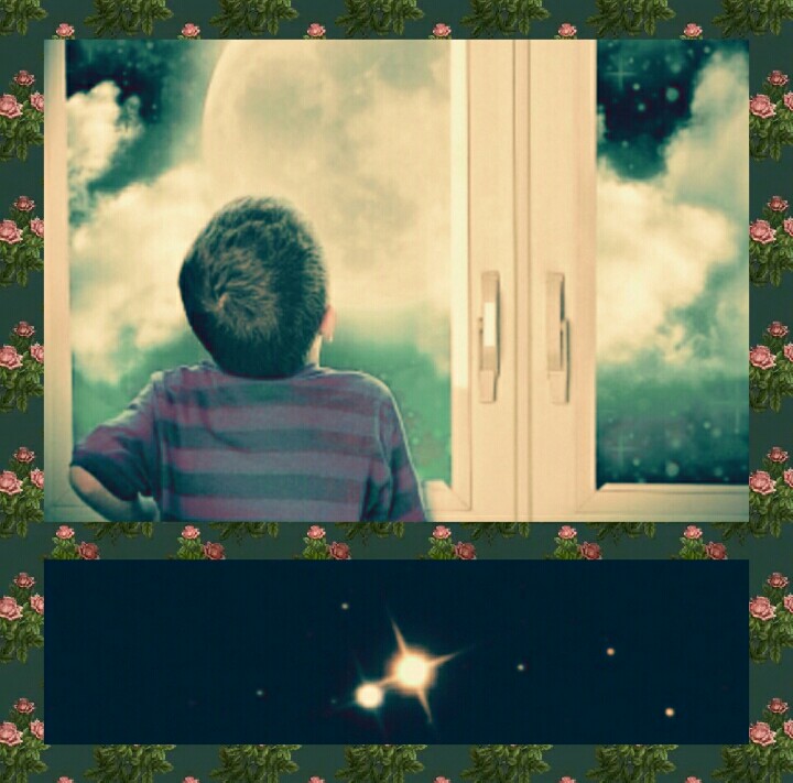 На черном фоне, близ луны, сверкают две звезды.