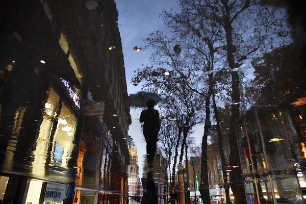 По промокшим улицам и скверам.
