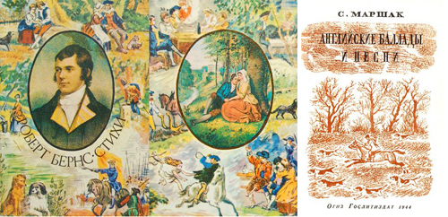 В качестве иллюстрации - обложки переводов Маршаком Р.Бернса, чья стилистика, как мне кажется, способствовала рождению ритма. (худ. В.Добер и Лебедев)