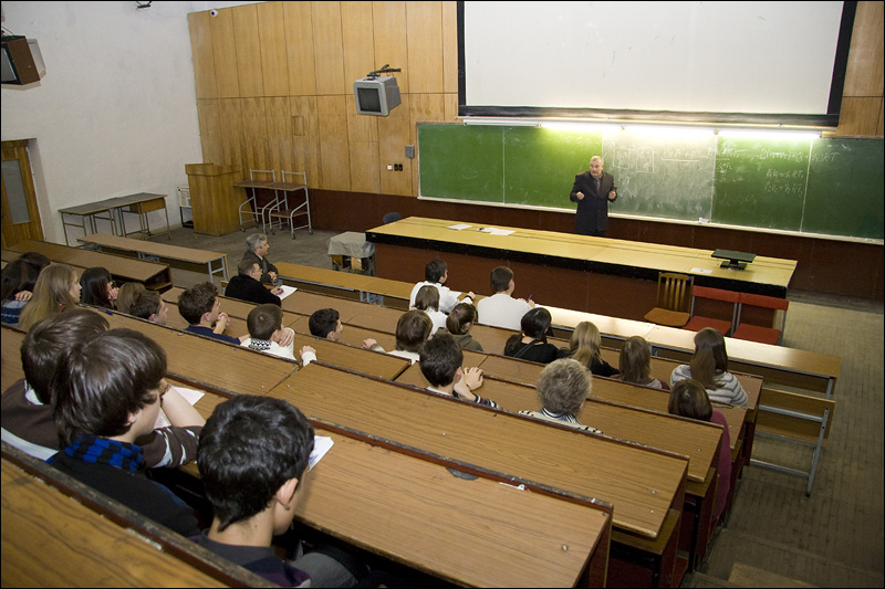 На фото я читаю лекцию в МИЭТ школьникам и учителям физики Зеленограда.