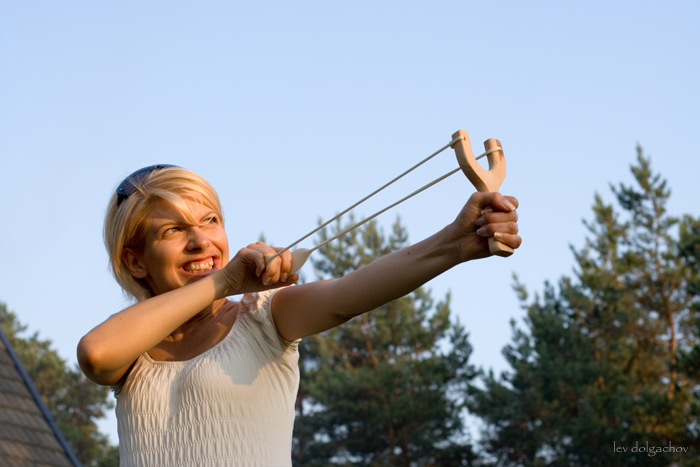 кто-то из рогатки.