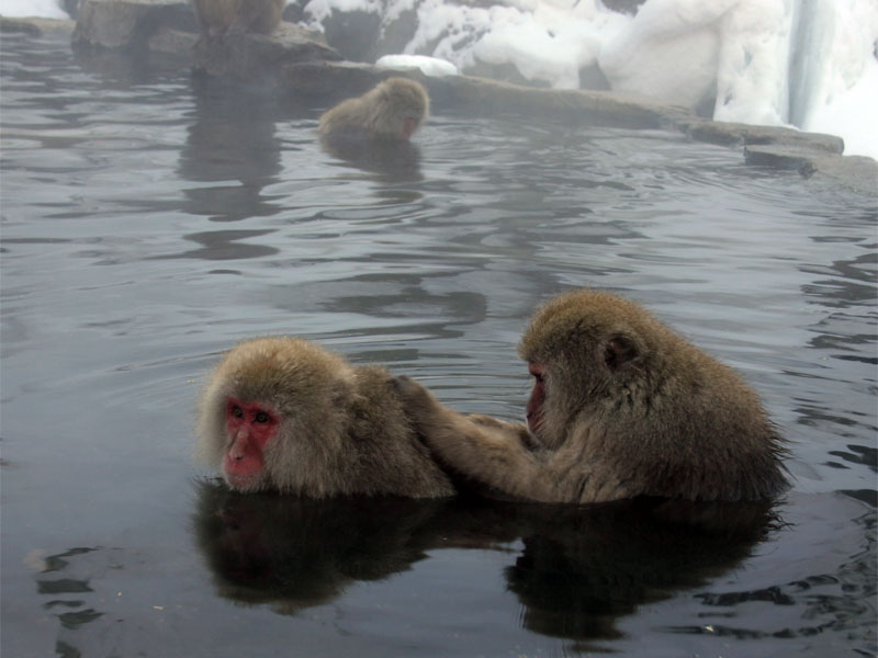Водичкой себя согревают макаки.