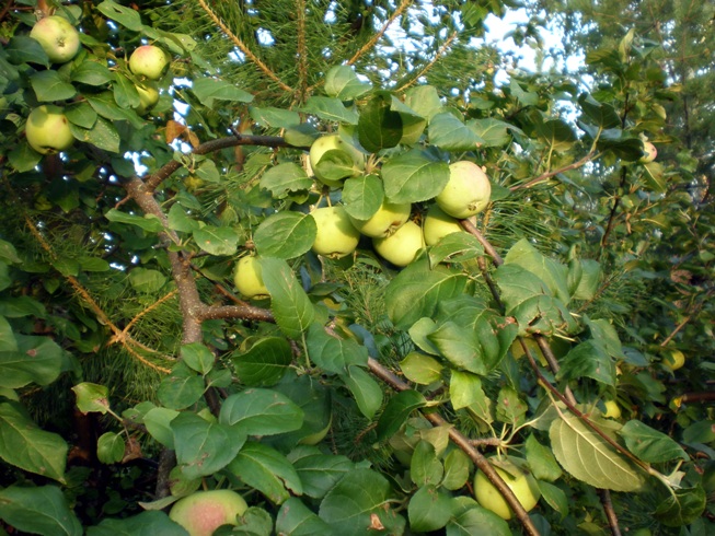 Яблок спелых в прихожей толпятся корзинки,