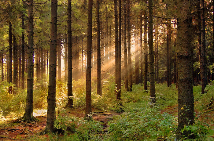 Стволы обнявшие лучи,