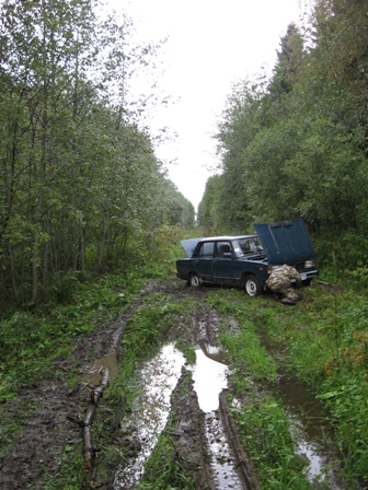 Ну и пролетели напрямик в старенькой испытанной «пятёрке» зыбких луж с десяток, два пригорка, чтобы влезть в болотистый тупик. Надо поворачивать назад. Только как? В грязи не развернуться, чистый пятачок размером с блюдце сорным лесом намертво зажат. Был бы немец, тут ему и смерть, только нашей ВАЗовской лошадке нравится играть с фортуной в прятки и от безысходности звереть. Вылезла, рыча порой не в такт, кашляя простуженным мотором, выбралась из леса, за которым ждал привычный, старый, добрый тракт. Что нам эти дальние леса! Нам домой бы! И грибов не нужно… И вот тут увязли в топкой луже все четыре наших колеса.