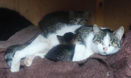 На фото кошка с котятами.