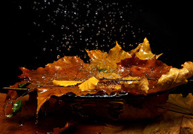Листья цветные везде раскидала.