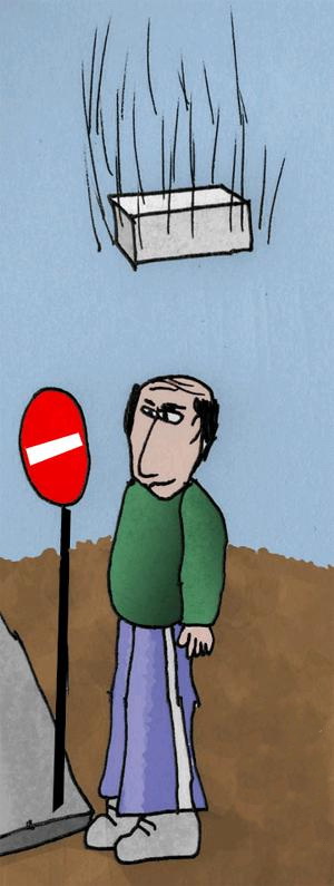 Кирпич взлетел задумчиво, неспешно,.. затем, завис в летающих словах...-