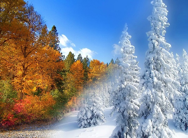 смена красок в лесу, в городах,