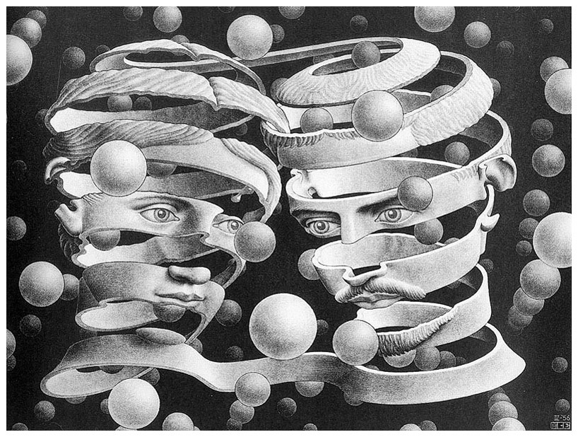 Произведение иллюстрировано картиной Маурица Корнелиуса Эшера "Связь союза"