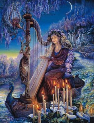 Она играет нам на арфе.
