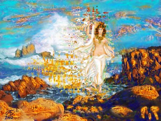 В сиянии из пенистой волны