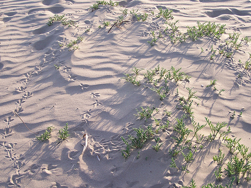 На снегу след птиц.