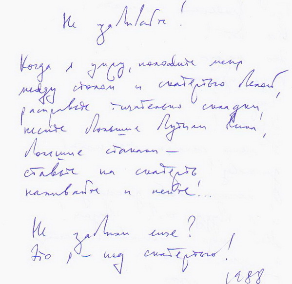 И какими же словами будут поминать, под заваливающиеся бытылки и стаканы?