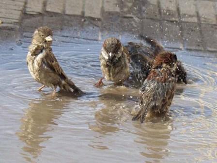 воробьи в теплых лужах