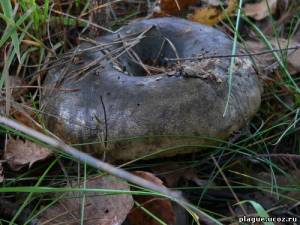 Вот ходим мы, значит, видим, что до нас уже тут, явно побывали, только желтеют срезанные «пеньки» и иней на траве сбит. У свата уже корзина полная. Как он их находит? Нюх на грибы у него, что ли? Вышли на просеку, идёт нам навстречу странный человек. Идёт босой и топчет будто землю. Поравнявшись с ним, видим, у него за спиной большая сумка полная грибов и корзина в руках до половины наполнена только одними чёрными груздями.