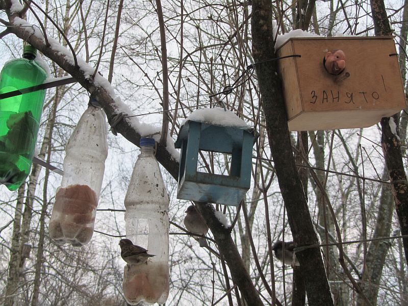 Папа им кормушку сделал, и они летают смело,